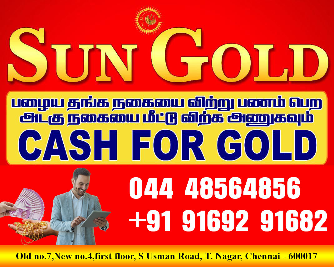 Sun Gold is a vision-driven brand with the goal of becoming the leading gold jewelry buyer in Chennai. We specialize in purchasing old gold, silver, diamonds, and offer instant cash payments along with top-quality services to our customers.